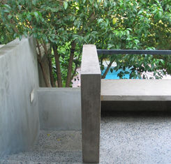 El proyecto consistió en dignificar el acceso y relacionar la casa de la primera planta con el jardín y con la nueva piscina. Materiales nobles, hormigón y ladrillos de terracota se combinaron para aportar al espacio calidez y nobleza.